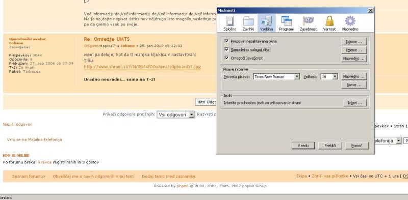 Ne odpre mi slike na prenosniku,kjer uporabljam T-2 jev UMTS.Na drugem imam amis povezavo in mi dela normalno.