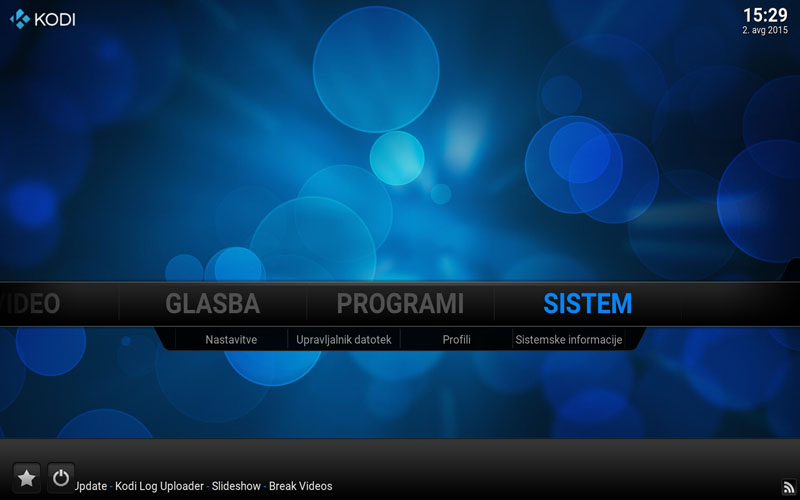 Pa začnimo z nastavitvijo. Na začetnem zaslonu KODI-ja spet izberemo SISTEM in nato TV ...