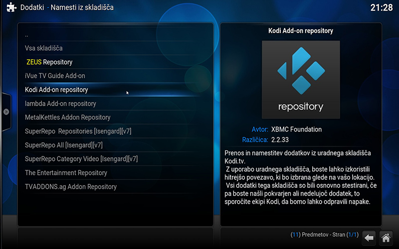 Repozitorij: Kodi (sta že v Kodiju, samo še namestitev)