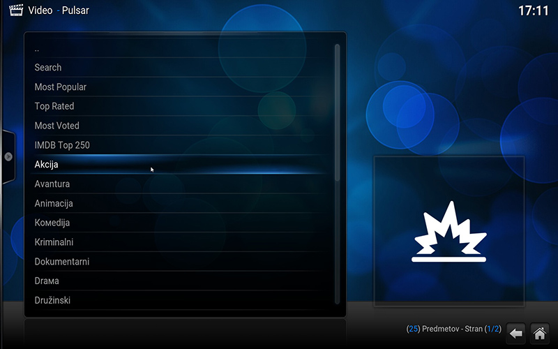 Dobimo dolg seznam še ne nameščenih video dodatkov. Izberemo Pulsar ...
