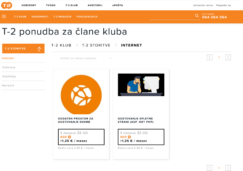 a še komu ne dela spletna stran T2 klub
