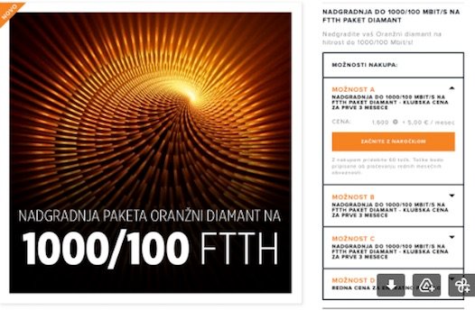 "Nadgradnja do 1000/100 Mbit/s na FTTH paket Diamant" (1600 točk +5 evrov na mesec)