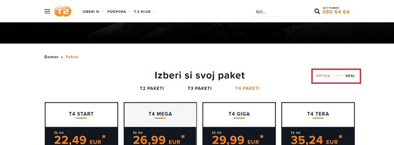 Samostojni stacionarni priključek ni mogoč, možne so le nadgradnje, kar pa je razvidno iz paketa in potencialne nadgradnje telefonije, i.e. 2,5 in 3,5 EUR.