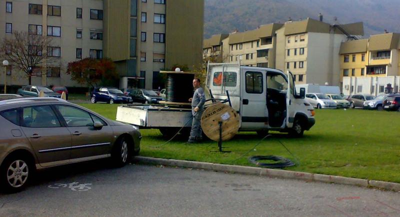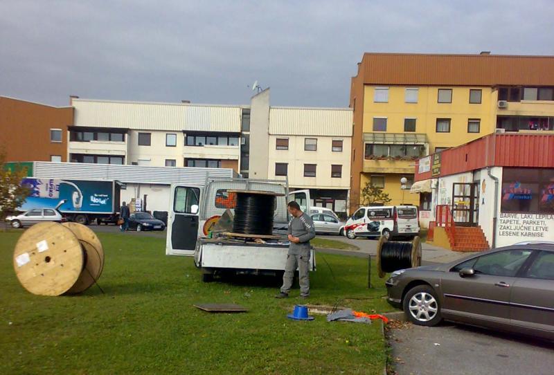Optične kable so začeli notri šibat! Slikano danes na Trgu Dušana Kvedra, pred mesnico Fingušt. Sem se malo pogovarjal z onim delavcem pa ni znal nič več povedat kot to, da bi naj bila centrala za optiko do decembra fertik. Pač tipičen fizikalac s Kosova