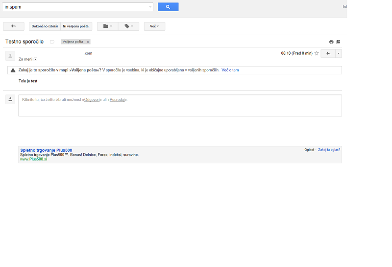 V gmail spamu mi napiše takole: Vendar to ni res.